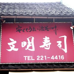 この「文明寿司」さん、女性センターから玉川図書館方面に抜ける道の、ふらっとバスの「芳済1丁目バス停」付近にあります。看板に「浪花の味」とありますが、別に「がんこ寿司系」ではありません(笑)。