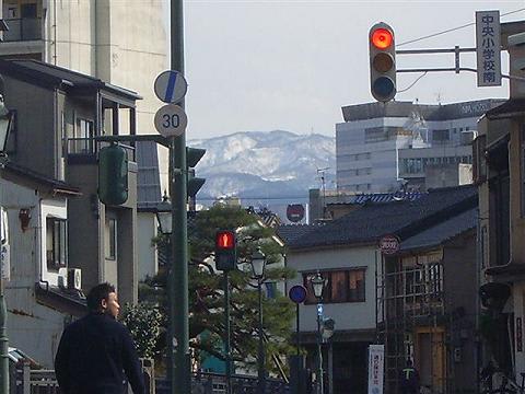 2014-03-25 せせらぎ通りは 花の小径だね 金沢の街 23日(日)24日(月)と 暖かい日が続き、街もずいぶんと華やかになりました。 香林坊のせせらぎ通りにも 花が咲きだしました。 遠くの山々は まだ白いけど・・