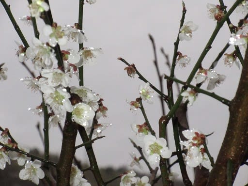 2015-04-09 春雨に濡れる白梅 畑仕事の愉しみ 世の中は、ソメイヨシノが満開で、街のあちこちでお花見真っ盛りですが 我が家は山深い山里なので、庭の白梅もまだまだ これからです。 雨に濡れて、ひときわしっとりとした気品を感じさせます。