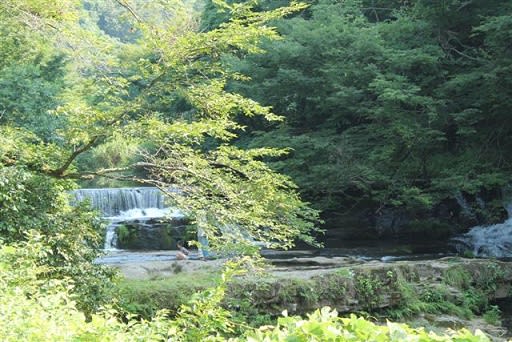 2016-08-11 山は遠いので せめて渓流にて @ 小矢部「宮島峡」 旅行 今日は山の日ですが 山に登るには体力がなさ過ぎです。せめて渓流にでも ということで、小矢部の宮島温泉近くにある「宮島峡」にすっ飛んでやってきました。 滝で有名なのですが、石川の吉野谷村の「手取渓谷の綿が滝」のような大型の滝ではなく、ごく控えめな滝でしたが、それでもマイナスイオン炸裂中でした。 ここ、紅葉の季節になるとますます素敵になるでしょうね。 「道の駅メルヘンおやべ」や昨年できた「三井アウトレットショップ」から 車でわずか7分ですから、開店前の時間調整でもご利用ください。