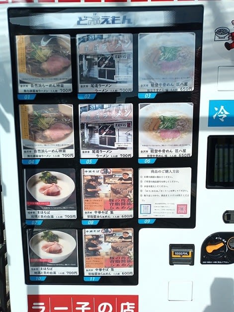 「神楽」「尾道ラーメン」「匠八屋」「集」の金沢の4人気店+福井の「まほろば」さんの5種類です。迷わず「尾道』(700円)を購入。ラーメン自販機と言っても湯気が立っているラーメンが出てくるわけではなく、冷凍パックです。具は入っていないとのこと。