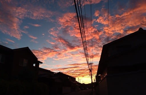 9月1日もそうだった。でもしばらくすると、東の空が、それはそれは鮮やかに真っ赤に燃え上がっていた。冒頭写真は、特にエフェクター等かけていない。実物は、もっともっと臨場感があった。