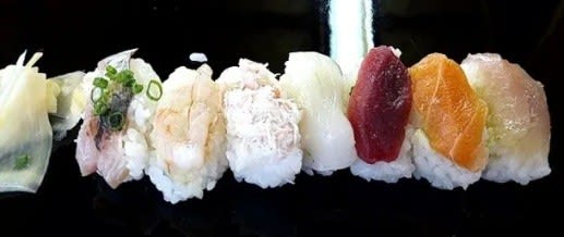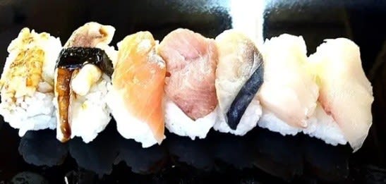 店内の空席は、カウンターのラスト1席を小生が占めたので、こあがり席の2卓のうちの1卓のみとなりました。大将は入店の順番(正確にはオーダーの順番)にひとり分ずつ一心不乱に握ります。小生の前にはこあがり席とカウンターで合計7人が寿司の到着を待ってます。7人分を握るのにどれだけかかるんだろうと思いながら待ってると、15分で小生の寿しが来ました。思ったよりは早かったですね。
